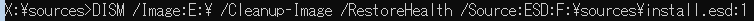 DISM /Image:E:\ /Cleanup-Image /RestoreHealth /Source:ESD:F:\sources\install.esd:1