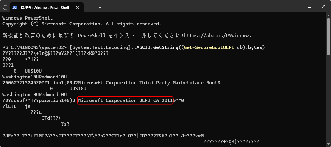 [System.Text.Encoding]::ASCII.GetString((Get-SecureBootUEFI db).bytes)