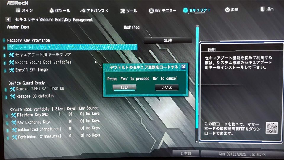 To update the Secure Boot certificate (the master key list of the security room), it is not an OS-level operation, but a PC foundation. UEFI/BIOS firmwareWe need to work on this.