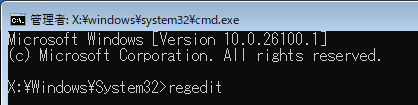 - 再び回復環境のコマンドプロンプトを開き、Windows ドライブ(例:Cドライブ)を確認します。