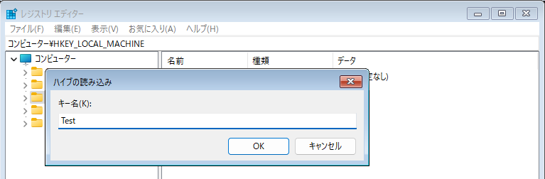 4.キー名を聞かれるので「Test」と入力し、OK をクリックします。