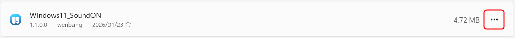 2.一覧から「WIndows11_SoundON」を探し、「…」リーダーから「アンインストール」をクリックします。