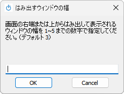 - はみ出すウィンドウの幅を入力できるウィンドウが表示されるので、1~5 までの数値を入力して OK をクリックします。